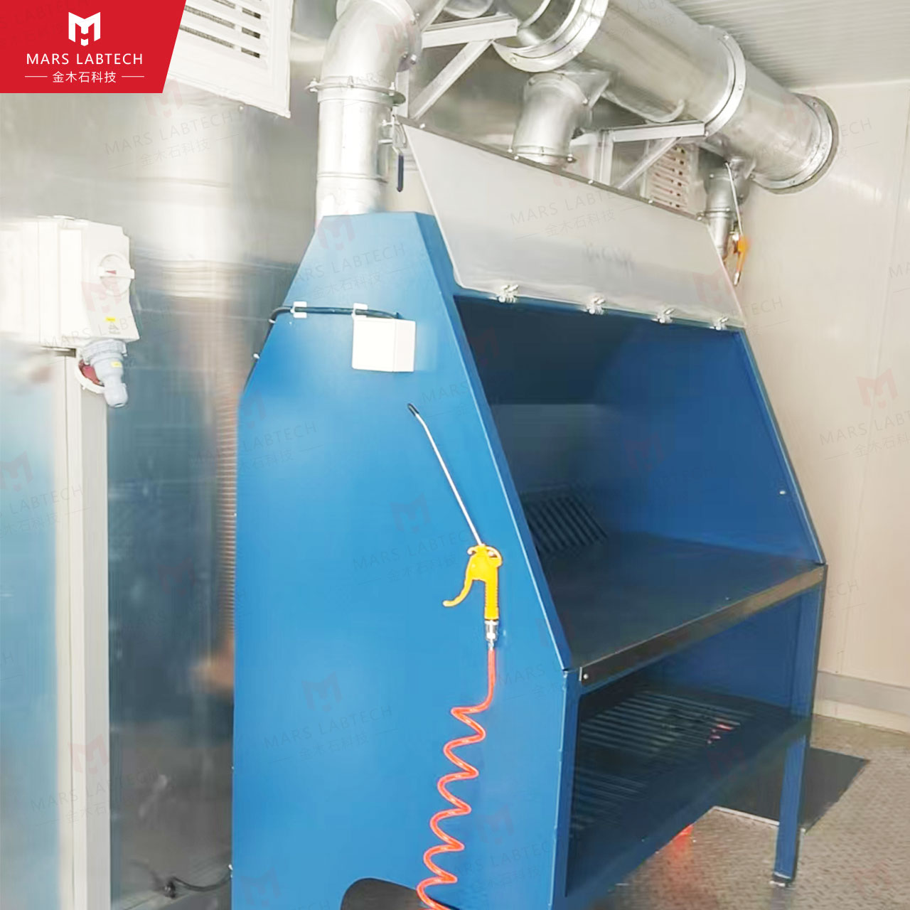 我们的工程师团队与客户密切协作,基于样品制备的标准流程(烘干、制样、存放)进行内部布局设计。根据客户样品制备操作流程布局设备摆放位置,形成了高效的操作动线,减少了实验人员不必要的走动,提升了工作效率。同时,连接到各个设备的整套除尘系统保障了内部工作环境的洁净与员工的健康安全。前瞻性的可扩展空间预留: