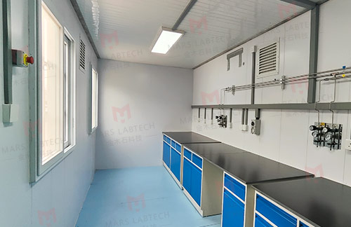 4. 辅助设施: 包括纯水系统、供电系统、废液处理系统和安全防护设备,确保实验室即使在偏远地区也能独立运行并保障人员安全。