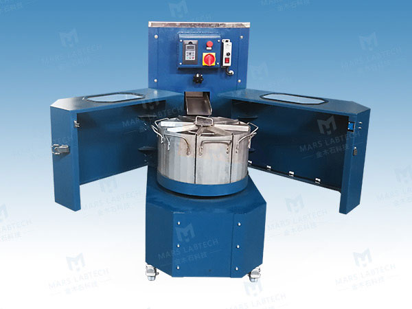 金木石RSD旋转缩分机内部有一个安全开关,可在盖子打开时防止操作。里面的八个桶用于样品的划分和收集。桶配有把手,便于拆卸。转盘可以用手自由转动,将每个铲斗带到装置的前面。与样品直接接触的所有部件均采用SUS304 不锈钢结构。控制面板可设置转速、转速等。驱动机构采用齿轮电机和变频调速,精确控制分段斗的速度。机器内部全密封,并有吸尘口用于安装吸尘管。